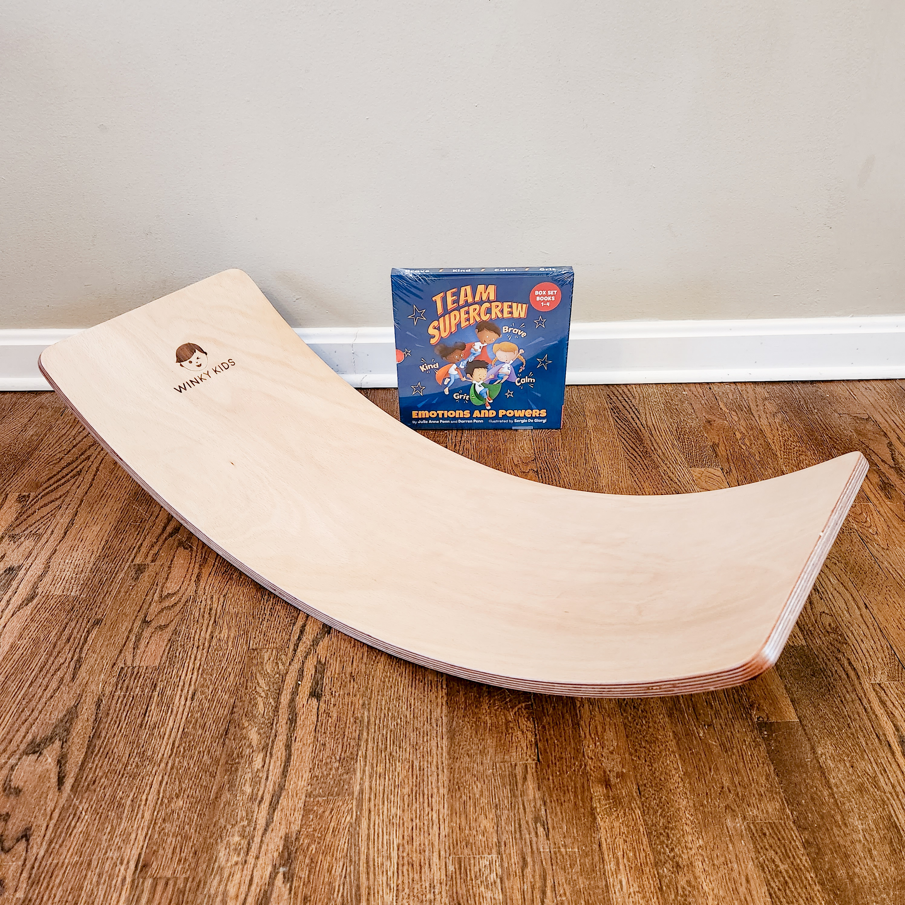 As an occupational therapist, this wobble balance board has so many uses! I can see Em integrating it into her forts and I can’t wait to see how well she does balancing and playing.