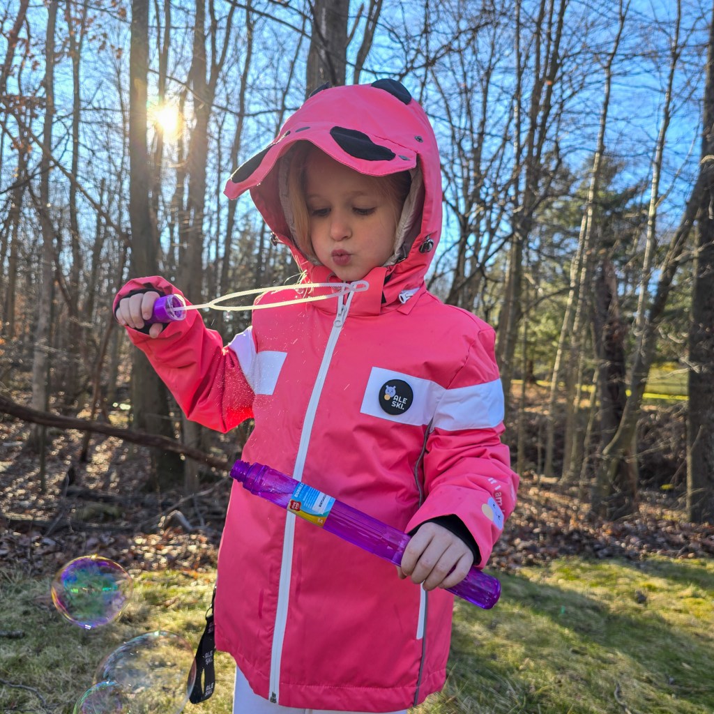 The outer layer of the Aleski Kids Smart Jacket is waterproof, windproof, and snowproof, ensuring that your child stays warm and dry in any weather condition. The inner layer of the jacket features a special heat-reflective lining, which helps to retain your child’s body heat and keep them warm and comfortable, even in freezing temperatures. Em loved how everything detaches through zippers or snaps, and loved how the top section unsnaps to protect her face from the elements. (This jacket is great for waiting for the bus!)