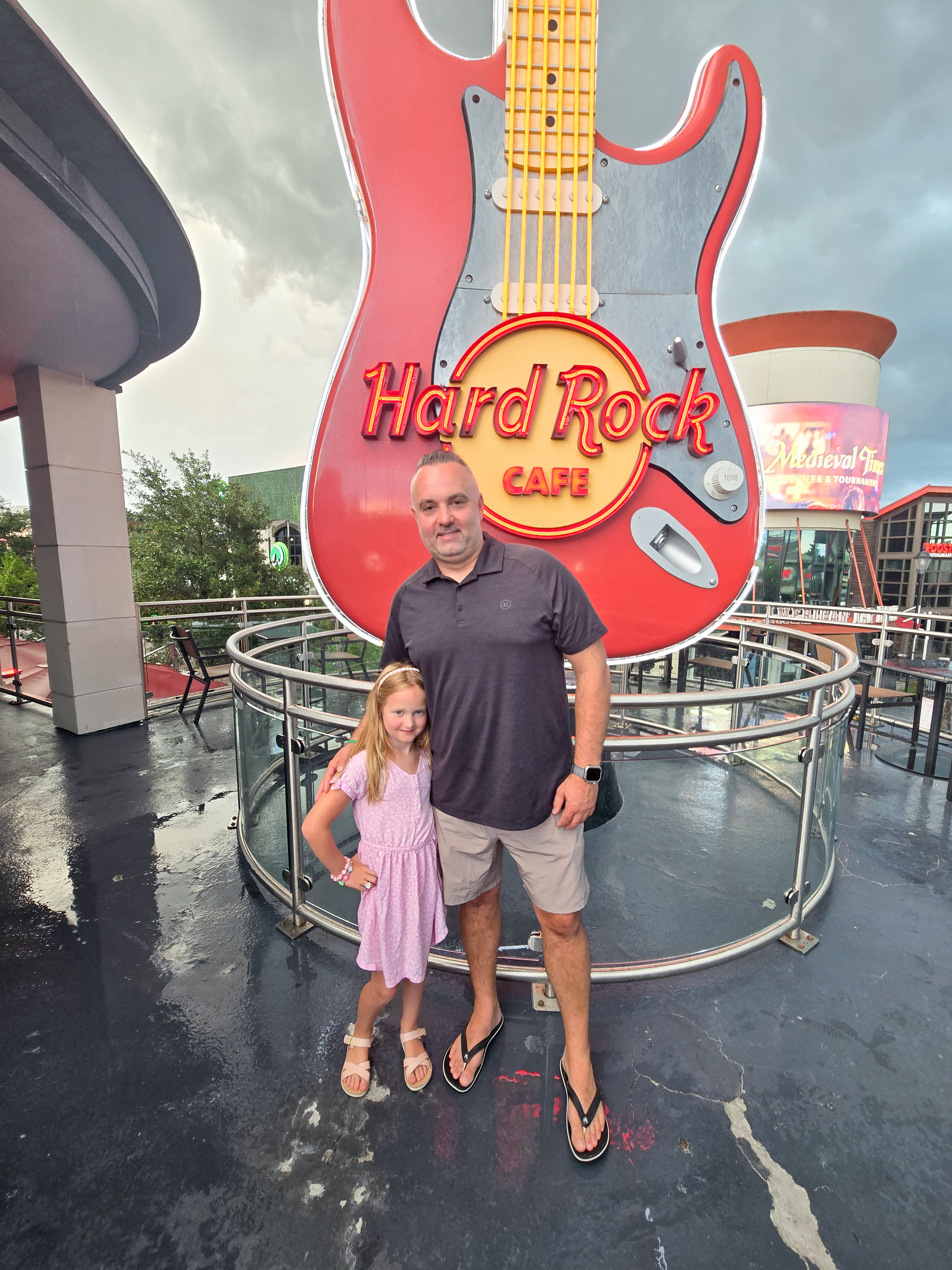 Dinner at Hard Rock Café Myrtle Beach was a total hit. Jason went all in with the Tampa Burger, while I treated myself to the Cowboy Ribeye—so flavorful and perfectly cooked. The kids were happy campers with their cheese pizzas, Nick pairing his with fries and Emilia opting for fresh red grapes. We kicked things off by splitting a plate of buffalo wings (my personal favorite), sipped on a signature Hurricane cocktail and an ice-cold draft beer, and finished with the ultimate sweet treat: a fudge brownie sundae that disappeared in no time. Beyond the food, we loved walking around and soaking in the incredible rock ’n roll memorabilia, from Jimi Hendrix to Lady Gaga, Beyoncé, Macklemore, Miley Cyrus, and Trent Reznor. Between the fun atmosphere, the flavorful dishes, and the unbeatable vibe, it was a night to remember. Check out more from that night here.