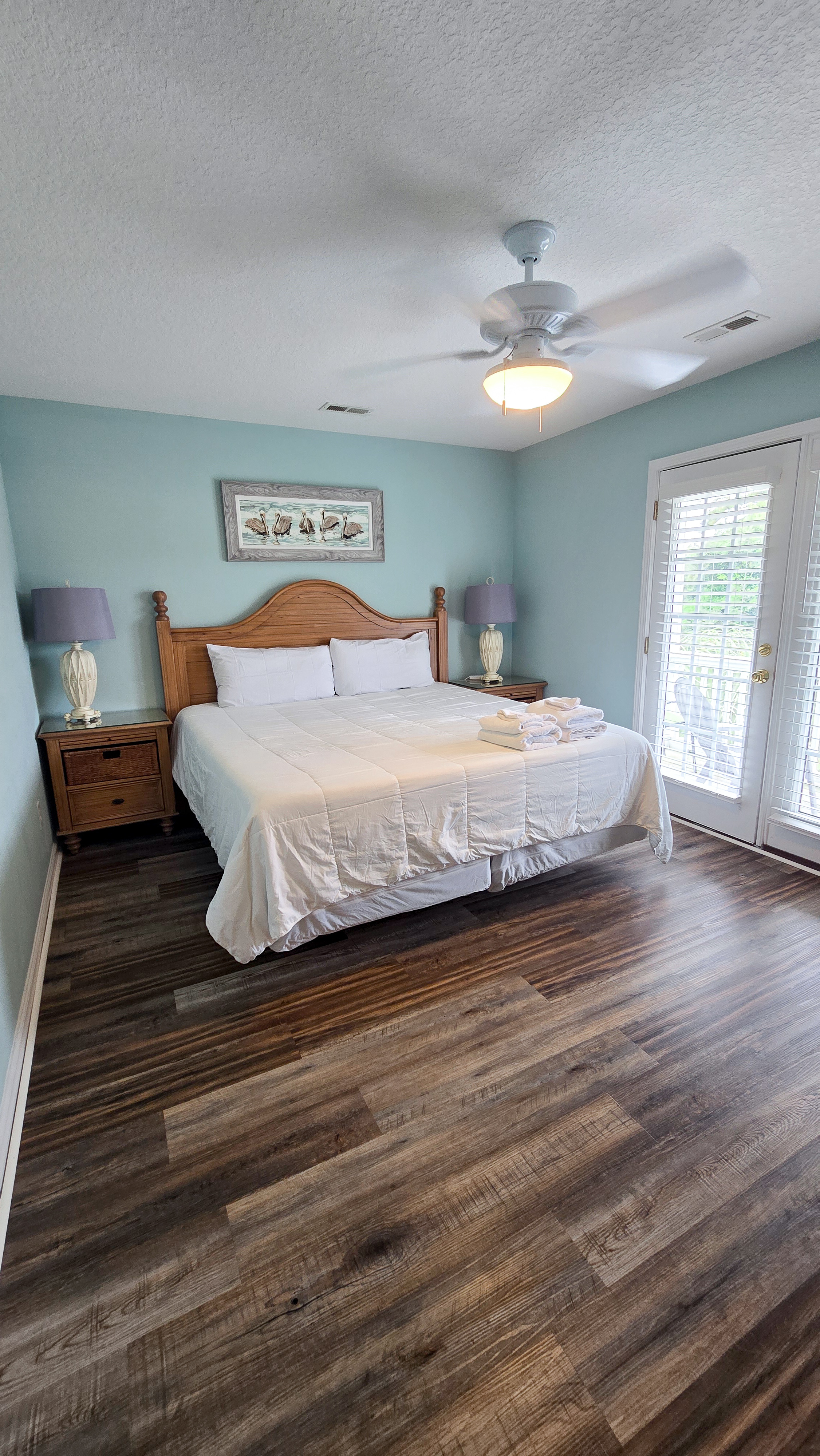 Turtles Up makes beach and pool days completely effortless by supplying all the gear you could possibly need—no need to pack anything from home. Just outside by the pool, there’s a convenient closet stocked with everything for fun in the sun, so you can simply grab and go. The outdoor space itself is a retreat, featuring a picnic table perfect for poolside dining, cozy Adirondack chairs set under a fan for comfort, mood lighting that makes evenings feel magical, and even an outdoor television so you don’t have to miss the game while you’re enjoying the fresh air.