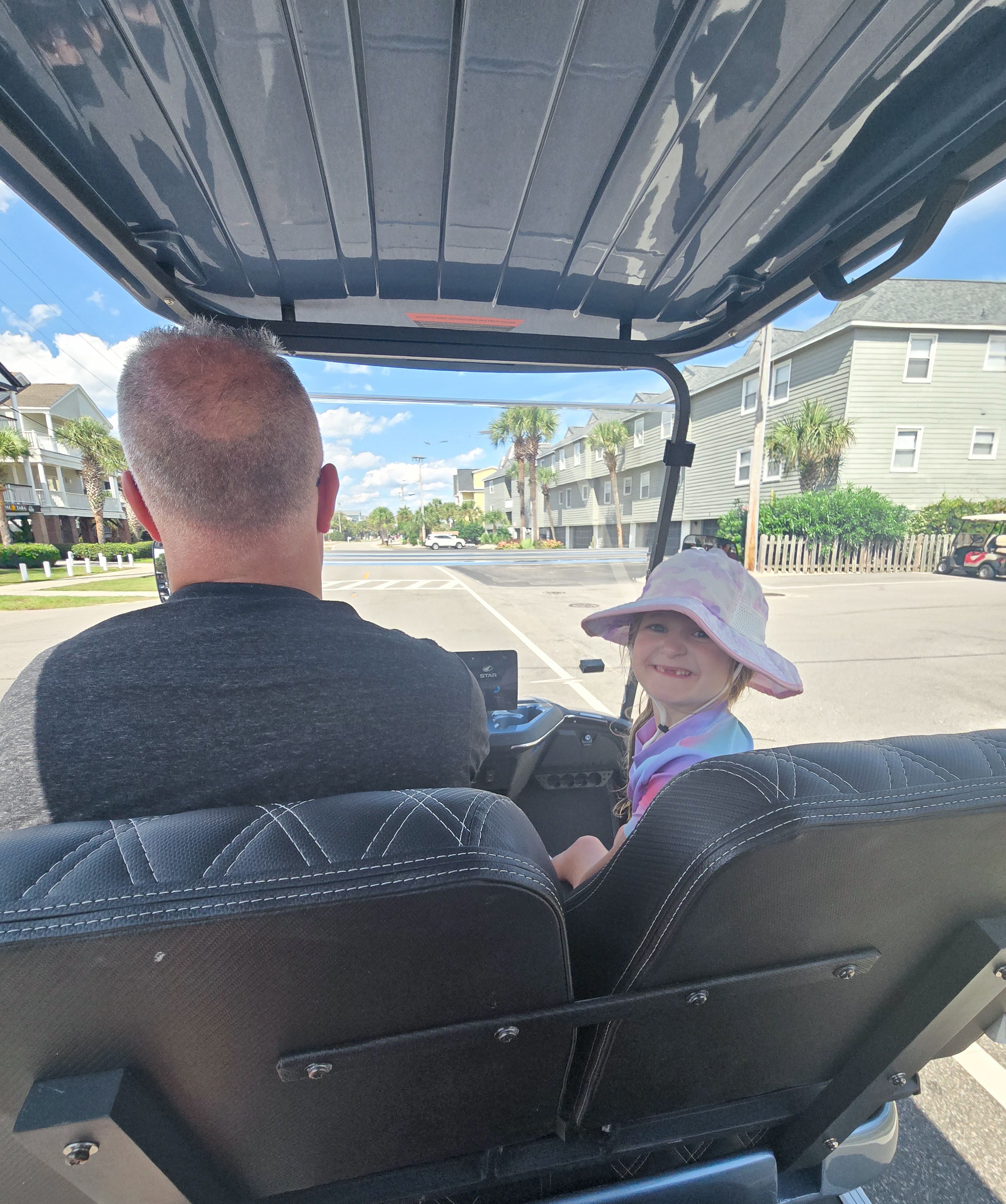 Another highlight of our stay was renting a 6-seater Low Speed Vehicle (LSV) from RDR4Carts with the Journee Rentals app. The LSV, a sleek model from Star Electric Vehicles, made getting around Surfside Beach a breeze. It was perfect for quick trips to grab food, explore local shops, or cruise to the beach without having to worry about parking, or lugging all of our beach gear. Plus, the kids loved riding in it which added a fun twist to our daily adventures.