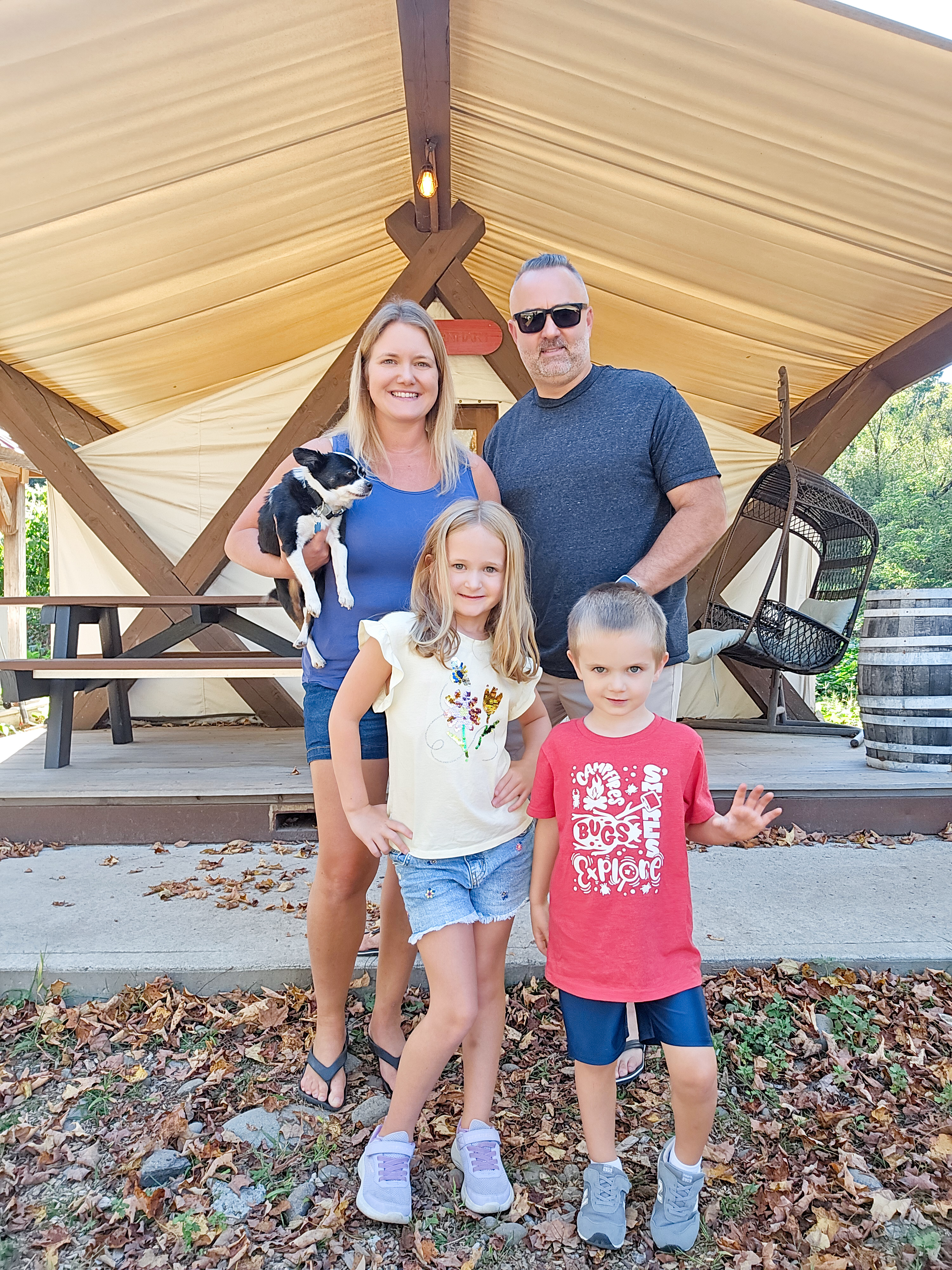 Fall in the Catskills is pure magic—and this year, our family found the perfect way to soak it all in with a Family Fun Weekend at Roscoe Campsite Park. Jason and I have been to Roscoe before and usually stay at the River House at Trout Town Farms, just down the road. But this trip was extra special: it was our first time bringing Emilia (7), Nicholas (3), and our 11-year-old rescue pup, Gino, for a true camping adventure. Spoiler alert: everyone had the best time.
