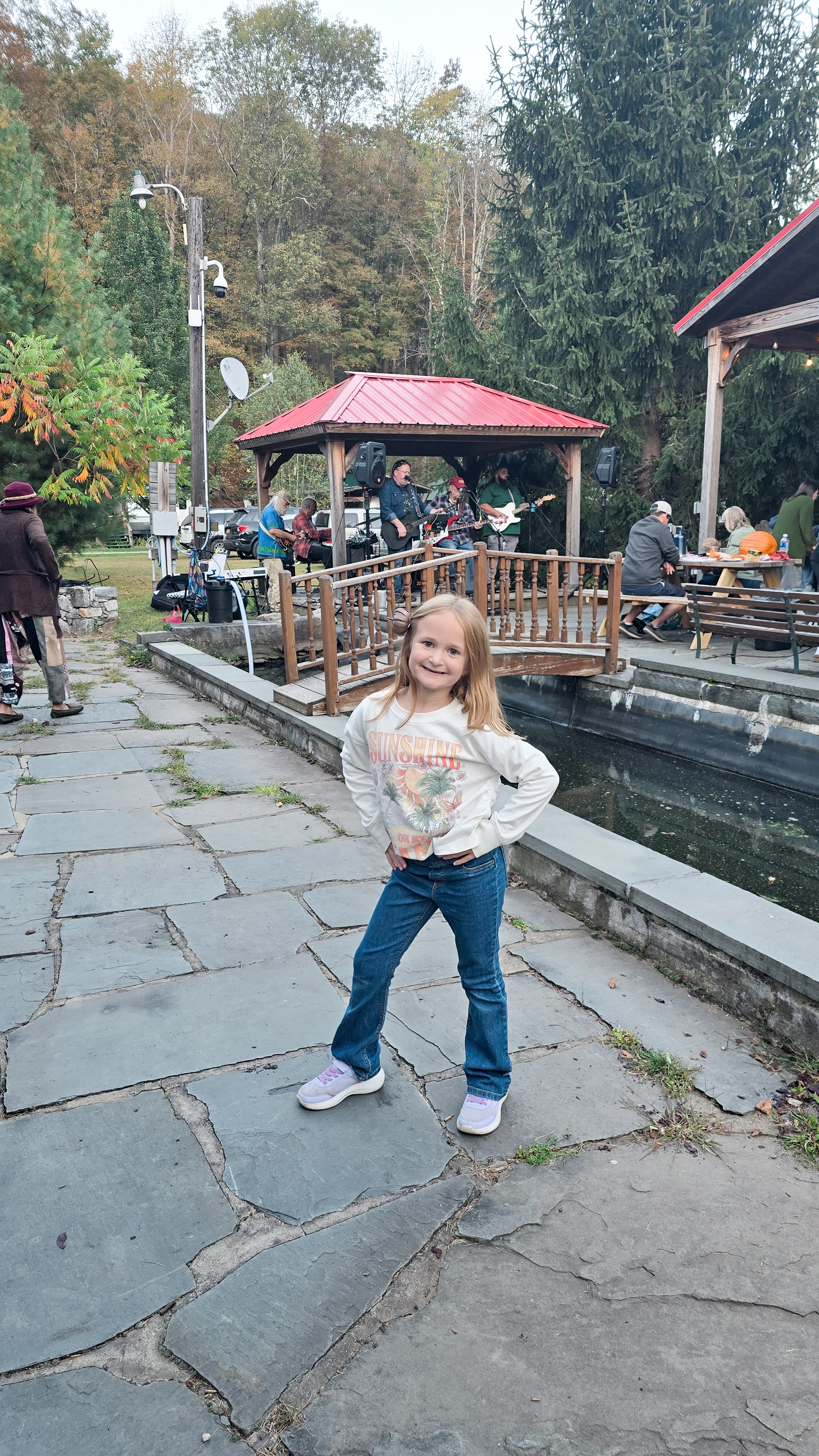 Later that day, we went pumpkin picking at Trout Town Farms, and the kids carefully picked out “the perfect ones.” Back at Roscoe Campsite Park, they decorated and carved their pumpkins during Wine & Cheese Night, while Jason and I enjoyed local wines, cheeses, and a live band. The kids danced their hearts out to the music, did arts and crafts, wore glow bracelets, and even got goodie bags filled with nostalgic toys like spinners and candies. Seeing their joy was everything.