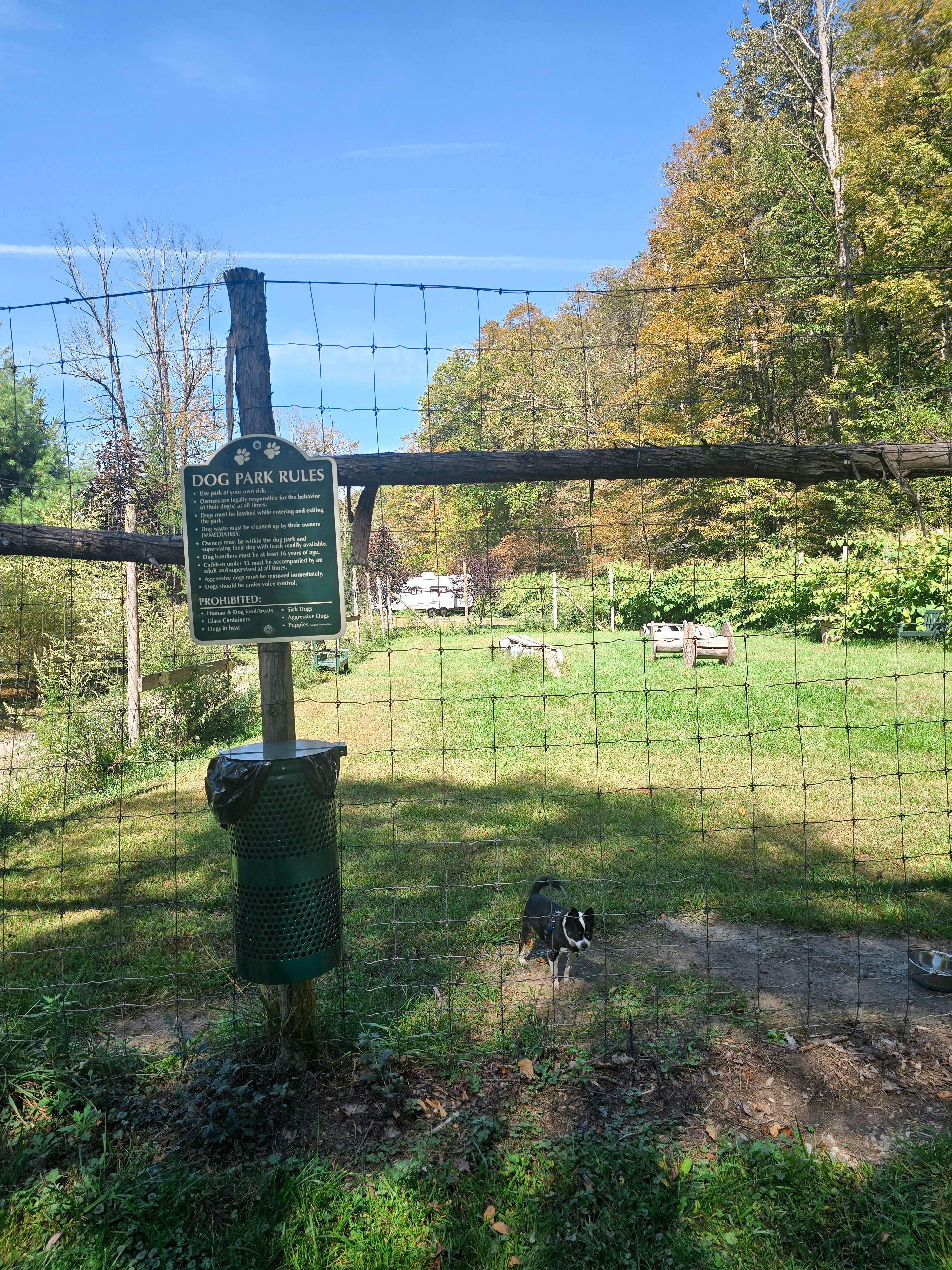 The kids also got plenty of time to run free. Emilia and Nicholas loved the playground, raced each other down the slides, and made new friends. We all shot hoops at the basketball court, and Gino had the time of his life exploring the dog park—his first official camping trip, and he was so happy.
