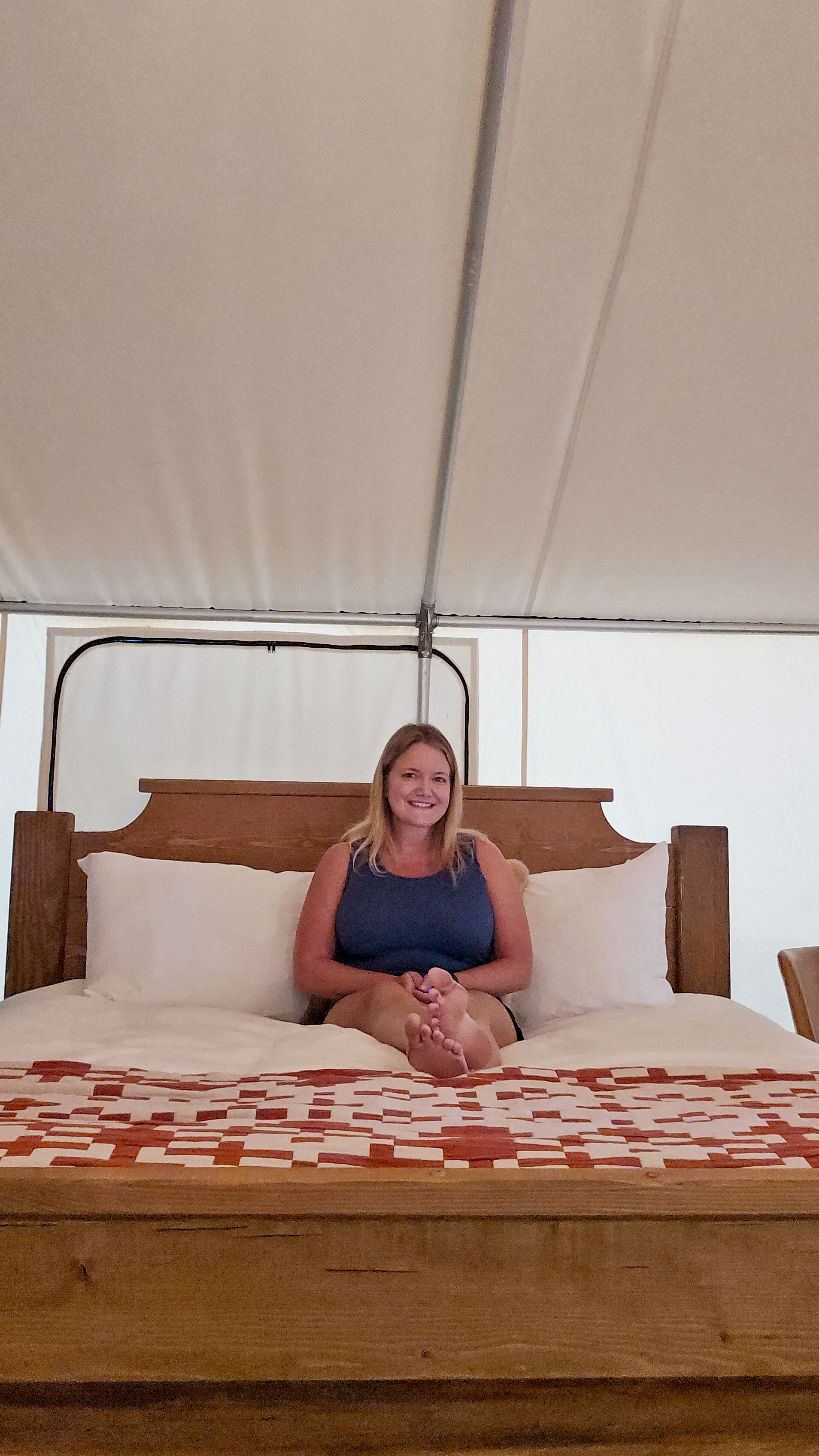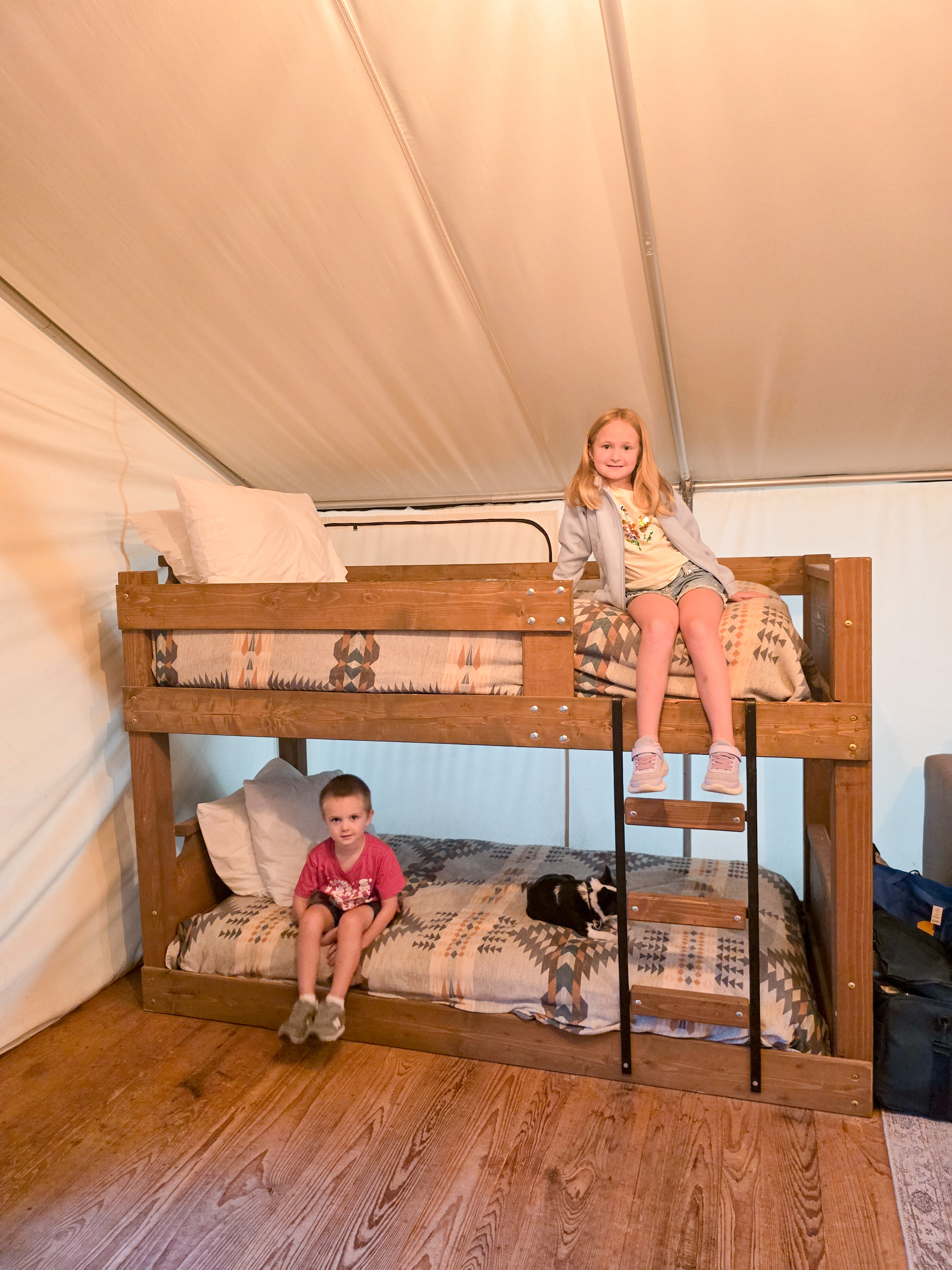 Forget what you know about “roughing it.” Our luxury tent at Roscoe Campsite Park felt more like a boutique cabin in the woods. With a king-size bed for us and bunk beds for the kids, there was plenty of space for the four of us to spread out. The kids thought the bunks were the coolest thing ever, while Jason and I loved sinking into the king bed after busy days of exploring.