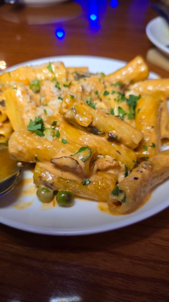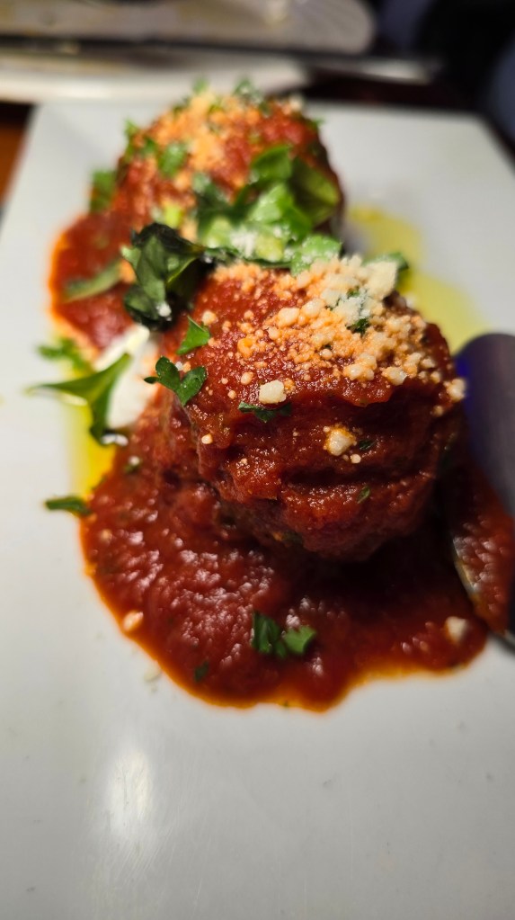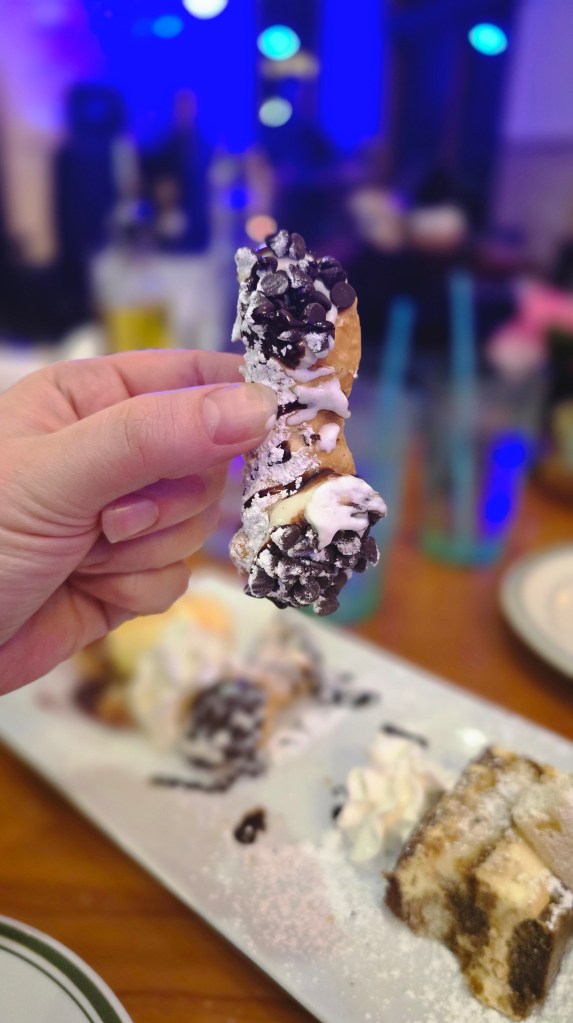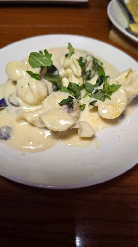 - Diverse Menu: Choose from an array of options, including hearty lasagna, delicate risotto, and mouthwatering seafood. The pear purses are my favorite appetizer so make sure you try those. The cannoli was out of this world, too. Also, try Duets, which are 2 tastes on 1 plate. Jason loves getting the Chicken Parmesan and Penne Vodka Duet. Also, get the cappuccino — we both loved it as an after-dinner treat.
